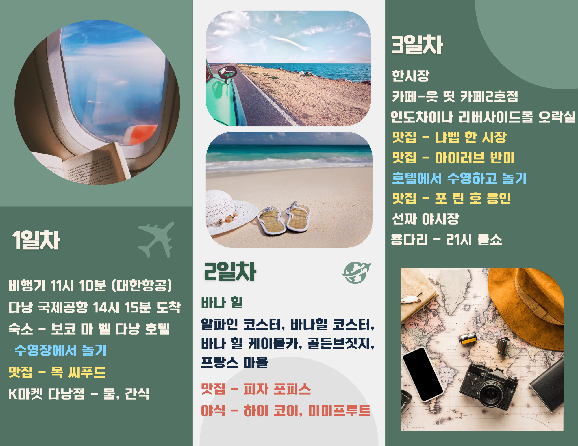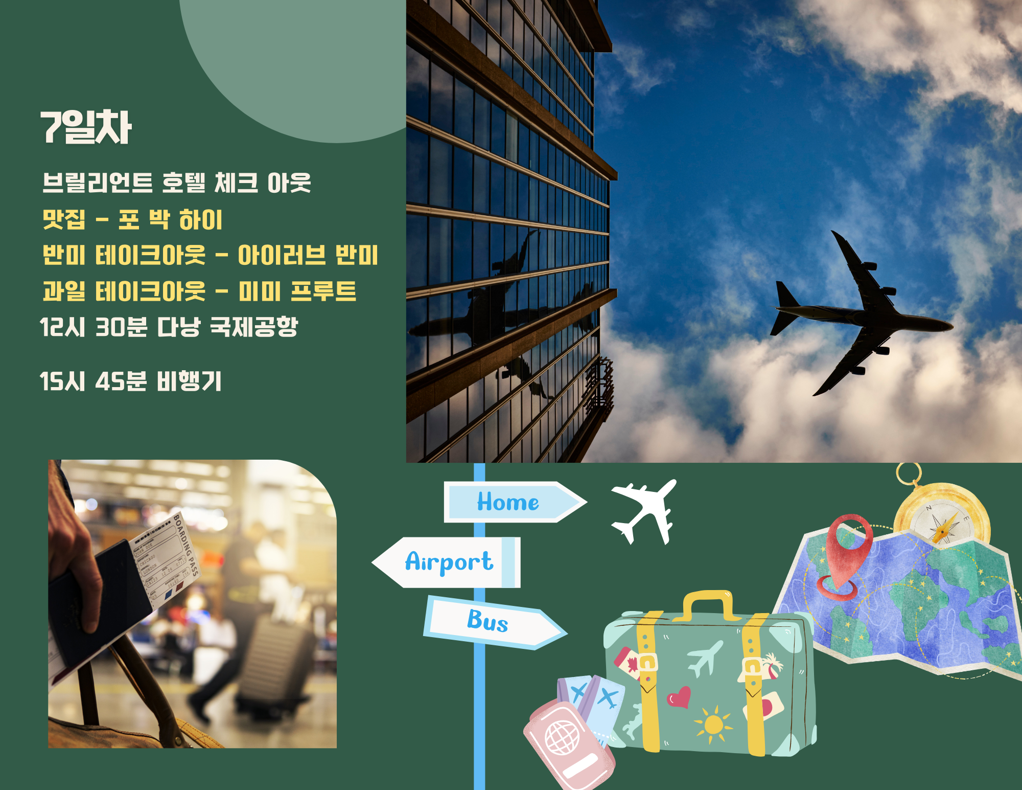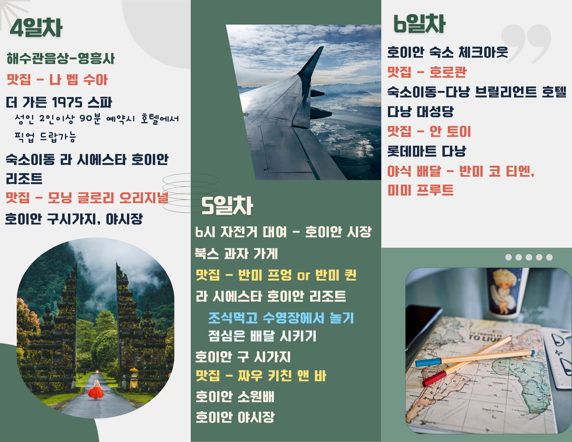 위의 내용을 종합적으로 보고 저희 가족이 가고 싶은 곳 반영해서 6박7일 다낭과 호이안 여행코스입니다.