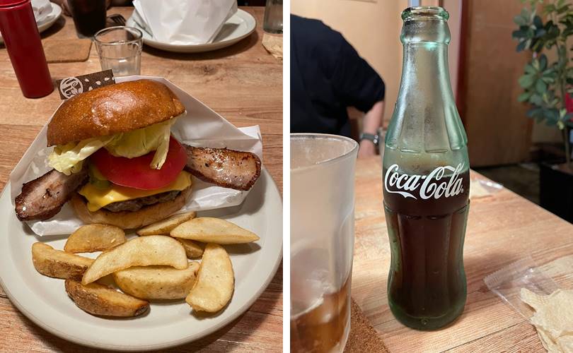 테이블이 4~5개 정도인 작은 가게에요. 사쿠라 버거를 주문했고 푸짐한 수제버거랑 감자튀김이 나와요. 음료는 따로입니다. 가격이 정확히 기억나지 않지만 비싸지 않았어요. 오랜만에 귀여운 병에 든 콜라를 봤네요. 1인 1버거해서 배부르게 먹고 나왔습니다. 우리 가족 들어오고 조금 있으니 일본 고등학생6명이 우르르 들어오더라고요. 다 먹고 나오니 밖에 학생들 기다리고 있었고요. 현지 맛집 인정~